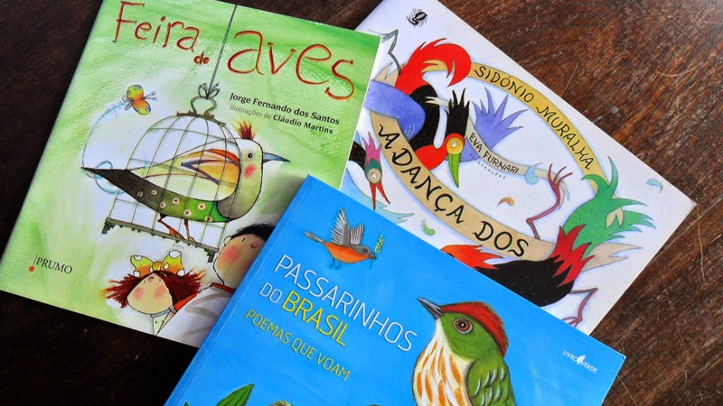 FEIRA DAS AVES, de Jorge Fernando dos Santos e Cláudio Martins (Prumo, 2010), usa de rimas paralelas e traz um desabafo frente às gaiolas de um viveiro, despertando pena em gente e silêncio, tristeza, carranca e padecimento no passaredo aprisionado. O livro faz parte da coleção Natureza Viva e coube à ilustração um papel preponderante ao exibir vinte e duas aves coloridas, ainda que os traços de Cláudio Martins tendam para a estilização, como sempre, humanizando plantas e animais com olhares e expressões várias.